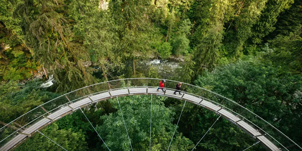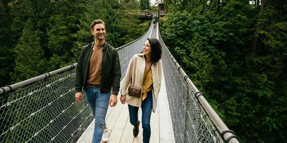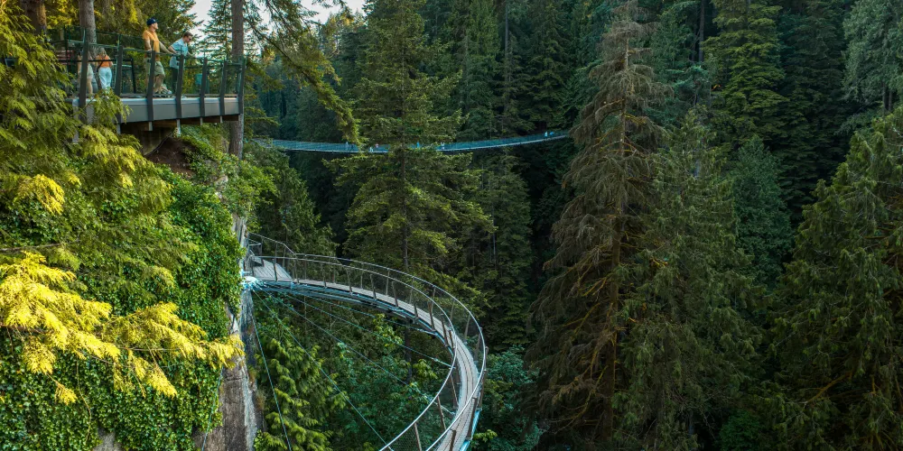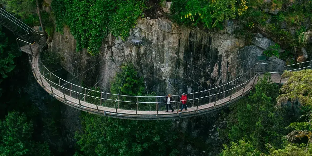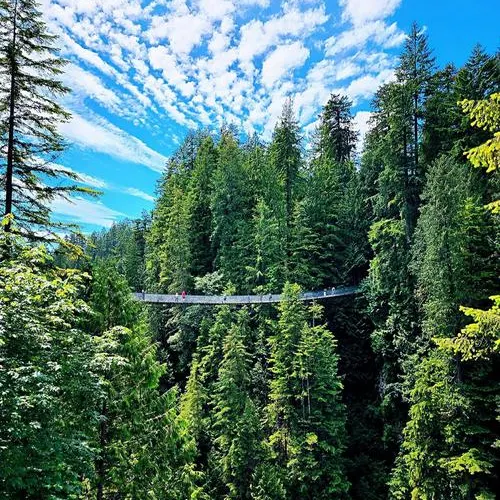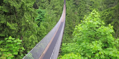 卡皮拉諾吊橋位於北溫哥華,全長137米,懸掛於70公尺的高空中,是世界上數一數二高的步行吊橋。 100多年前,由當地原住民用麻繩和厚木板建起,橋下是水流湍急的卡佩蘭奴河,當風掠過山谷時吊橋會搖擺發聲,頗似人的笑聲,因此也被稱為"笑橋"。