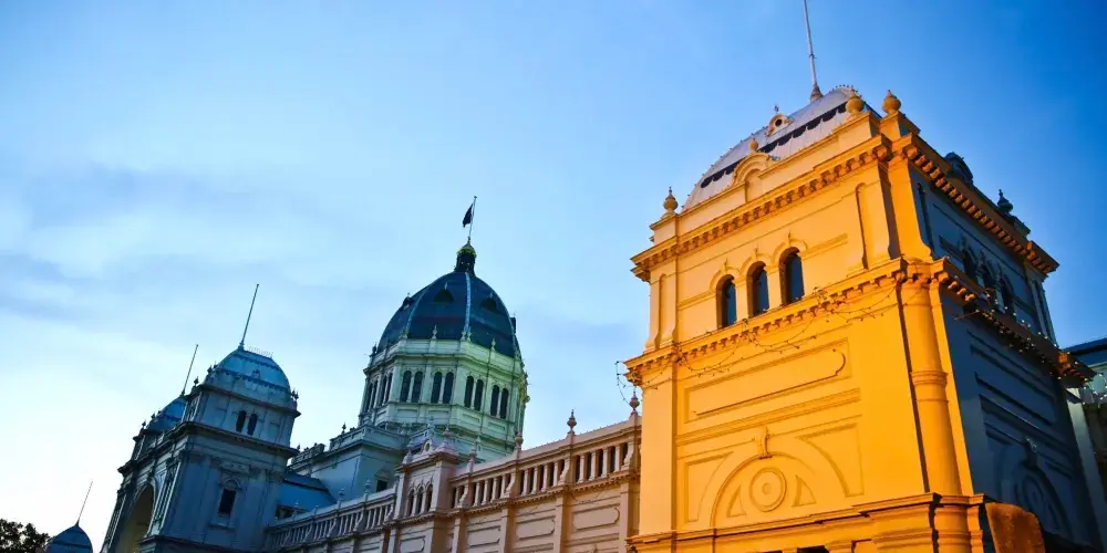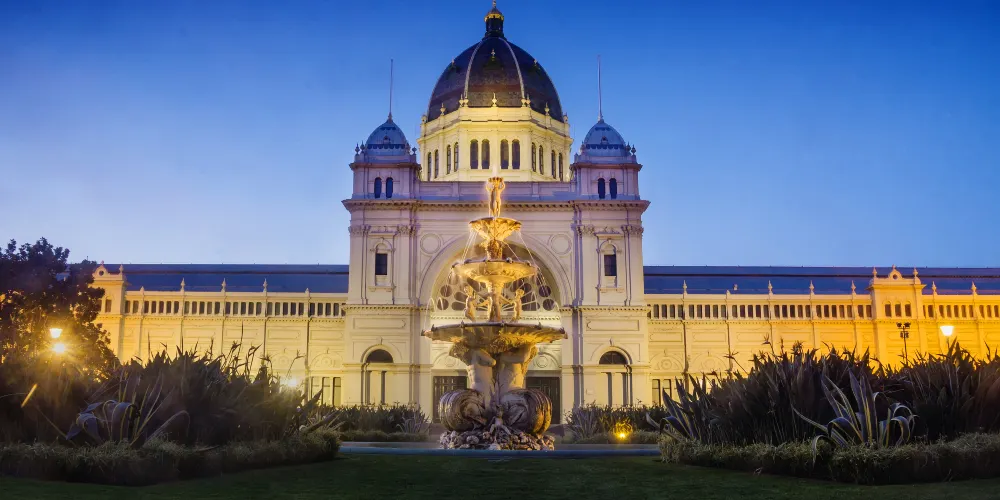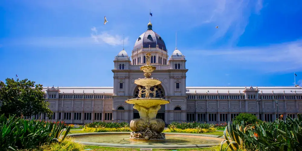 卡爾頓花園位於墨爾本市中心北側,是澳洲少有的聯合國世界文化遺產地。園內核心建築皇家展覽館建於19世紀末,融合拜占庭、文藝復興與哥德式風格,曾舉辦萬國博覽會,現仍用於大型展覽與慶典活動。其穹頂結構與鑄鐵裝飾展現維多利亞時代建築特色,外牆淺黃色調與週邊綠植形成和諧對比。