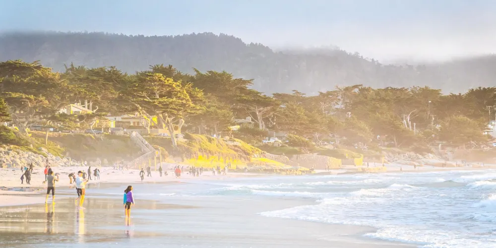 海灘位於卡梅爾小鎮,這裡的沙灘比較潔白而且沙子非常細,因此比較適合進行沙灘活動,許多喜歡衝浪的愛好者會來此,運氣好的話還能碰到鯨魚。遊客可以在沙灘上晒晒日光浴,聽聽海浪。說到卡梅爾這個小鎮,是加州十七哩海岸公路的一大亮點,小鎮上常居著許多藝術家和作家,因此這裡整個透露著精緻的藝術氣息。