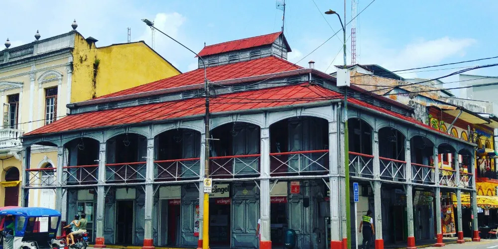 鐵房子坐落在武器廣場邊上,外表乍看並不引人注意,就是一堆被螺絲擰在一起的鐵皮。但鐵房子的設計師,正是主持設計巴黎埃菲爾鐵塔的古斯塔夫埃菲爾(GustaveEiffel)。這棟建築原建於巴黎,在1890年左右遷至伊基託斯。如今這裡是一家綜合商店。