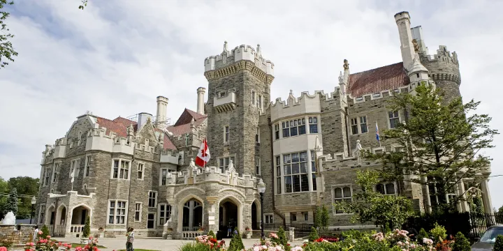 卡薩羅馬城堡建於1911年,是金融家Henry Pellatt爵士的私人豪宅,古堡內有幾十間裝飾華麗的房間,神秘的塔樓,幽深的隧道,規模龐大的馬厩,還有隱蔽的暗道,典雅的溫室花房,和一個依山而建的美麗花園,花園每逢夏季開放。走廊兩側的中世紀盔甲,以及古堡內嘎吱作響的木地板,令人有種時光交錯的感覺,彷彿身處一百年前的豪門巨宅之中。