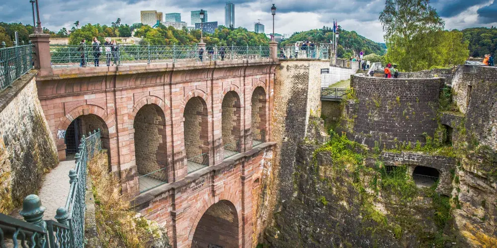 位於Grund區阿爾澤特河畔的防禦城牆,被譽為“最美的歐洲陽台”,17世紀由西班牙人和法國人建造。這裡以前有陡峭台階,失去防禦功能之後拆除了外側的保護牆,自然而然的形成了趨緩的360度觀景平台,站在這裡能夠一覽Grund河穀的美麗景色。