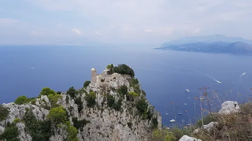 則評價索拉羅峯位於卡普島,海拔為589米,是卡普島的高峯。山上有19世紀為英法戰爭而建的碉堡,也有奧古斯丁皇帝的塑像,這個登上卡普島的人。這個石灰巖組成的山峯,居住着包括楊梅,桃金娘,冬青,香樹在內的超過900種的植物。很多鳥類也經常到訪,其中甚至有遊隼。攀登索拉羅峯並不困難,不管從passetiello還是從AxelMunthe攀登皆可。站在索拉羅峯頂,可以看到那不勒斯和薩萊瑞的海灣,更有普羅奇達島的全景可以觀賞。