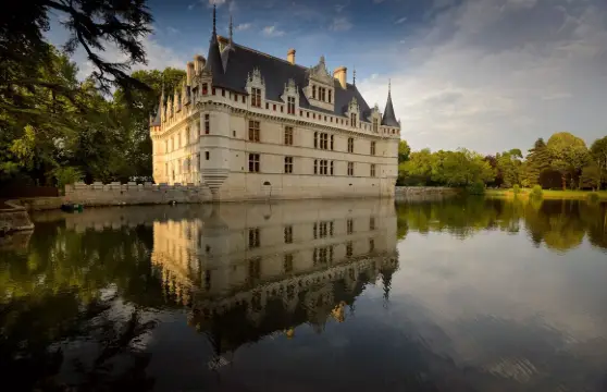 阿澤勒麗多城堡位於中央盧瓦爾河谷地區,建於安德爾河的一個小島上。我們今天看到的城堡是由弗朗西斯一世時代的一位富有的財務主管吉爾·貝特洛特建造的,他吸收了義大利新藝術風格和法國建築的完美體現。三個對稱的立面,但建築呈L形,建在河邊,部分伸入水中,其氛圍明顯不同於世界城堡的景觀。