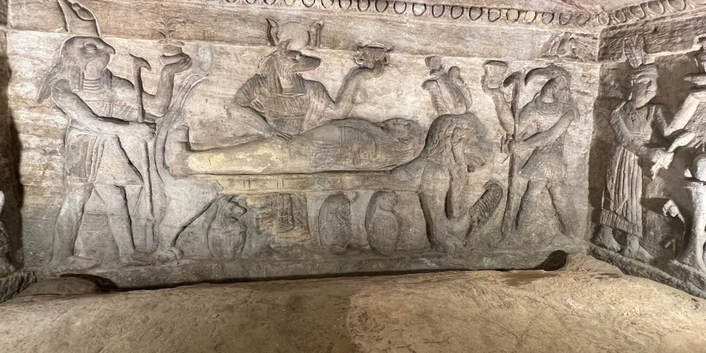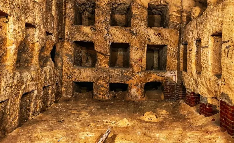 這是目前所知的埃及较大的羅馬時期墓場。這處墓穴包括3層墓塚,墓室深達35米。底層大約在街道以下20米,被地下滲水所淹沒,無法靠近,但上部可以參觀的區域已足夠令人印象深刻。