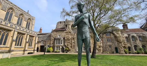 人們通常會從大門開始遊覽,大門繼續往前的鴿舍是院長宮殿僅存的遺迹,而西立面遺迹能看到在圍牆上鑽出來的洞穴式房屋,非常特別。附近的參孫塔樓前,漂亮的聖埃德蒙雕像是著名雕塑家伊麗莎白·弗林克夫人的創作。