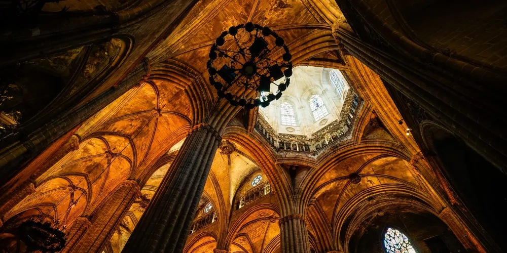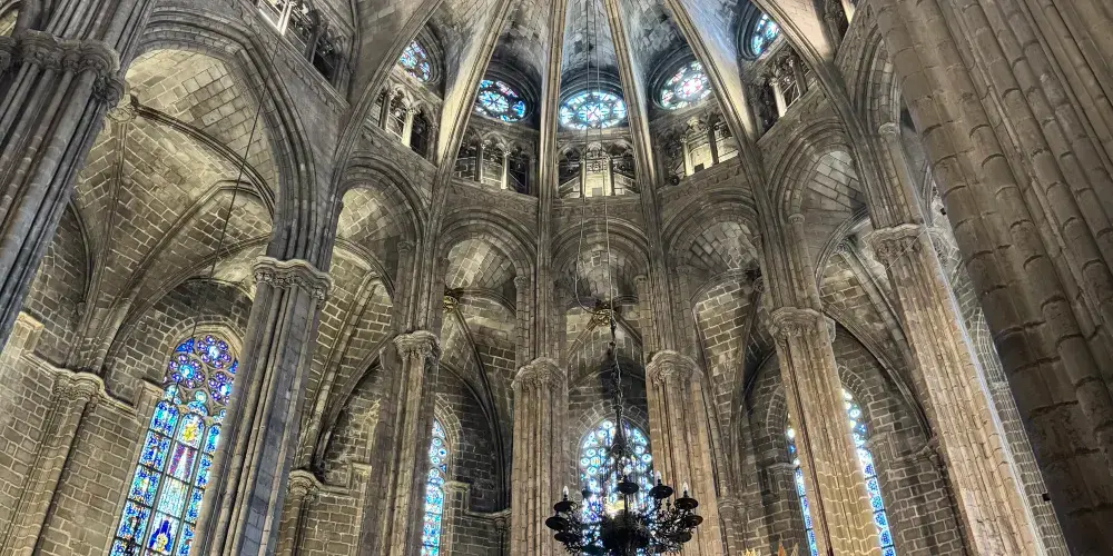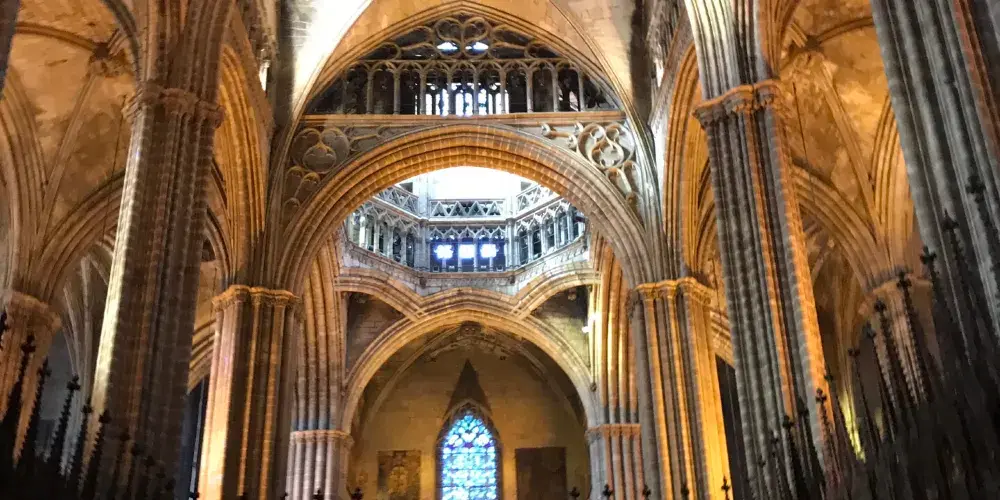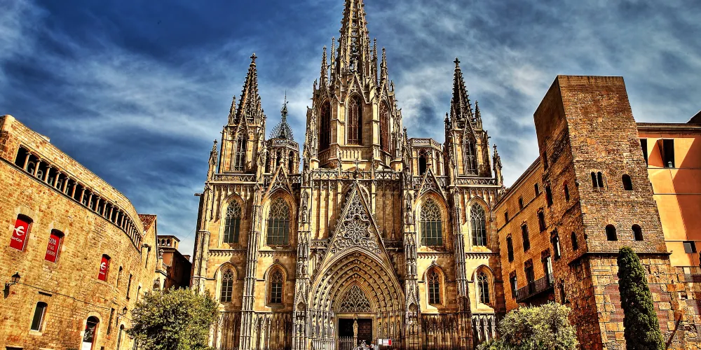 巴塞羅那大教堂主體以哥特式風格為主,細長的線條是主要特色,圓頂和內部結構則顯示出新哥特風格。通過教堂穹頂邊的電梯可以上到教堂頂端,飽覽巴塞羅那老城風光。大教堂迴廊的各個祈禱室中供奉著各手工業行會的保護神。聖埃烏拉利婭禮拜堂中唱詩班的座椅、宗教壁畫、雕塑和各式各樣的金銀器具華美奪目。此外埃烏拉利婭聖女墓穴和萊潘多基督祈禱室也值得特別留意。