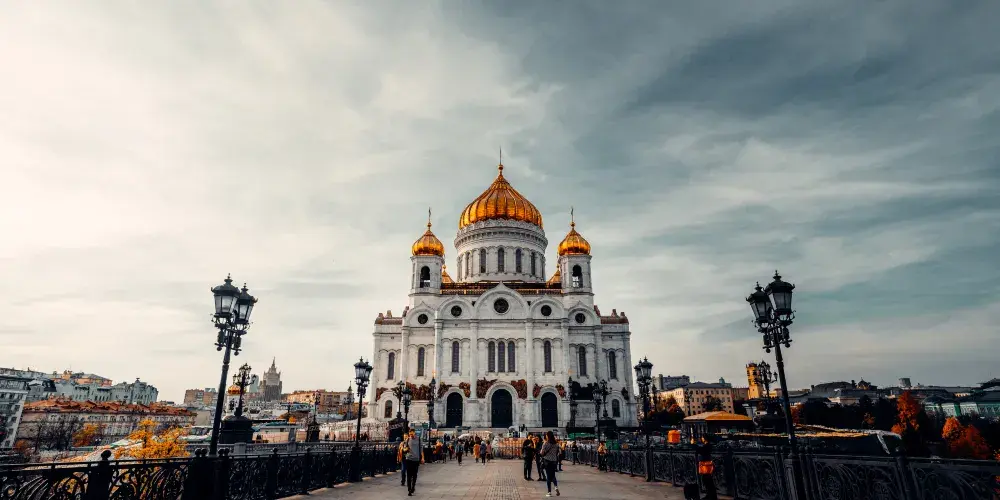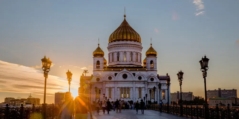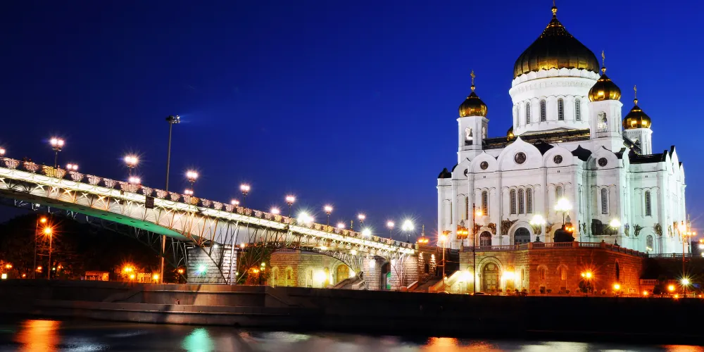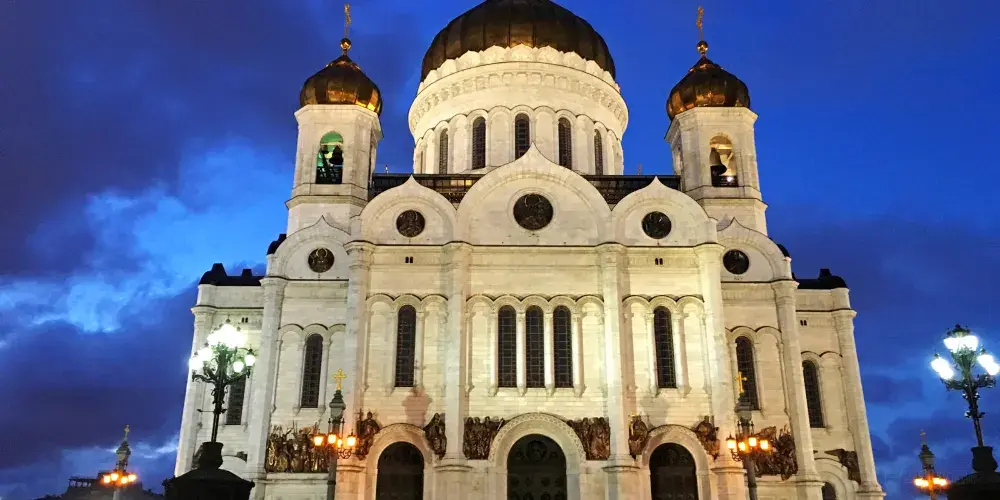 這座新拜占庭風格的教堂,建於1812年,是一座集宗教性和歷史性於一身的紀念建築物,連同中間的金色穹頂,總高度達103米,其俯瞰之下則呈85米等長的十字形,是一座不折不扣的傑作,也是俄羅斯宏偉的建築之一。