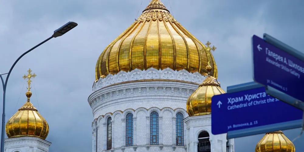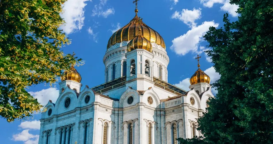 在莫斯科的市中心,克里姆林宮的不遠處,矗立著一座很高的東正教教堂-基督救世主主教座堂,教堂的規模很大,可同時容納一萬人齊聚一「堂」。