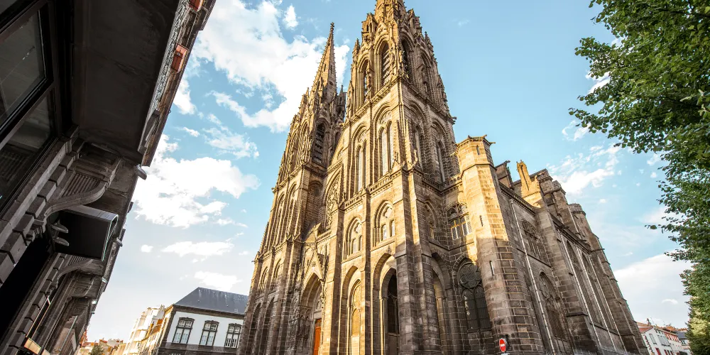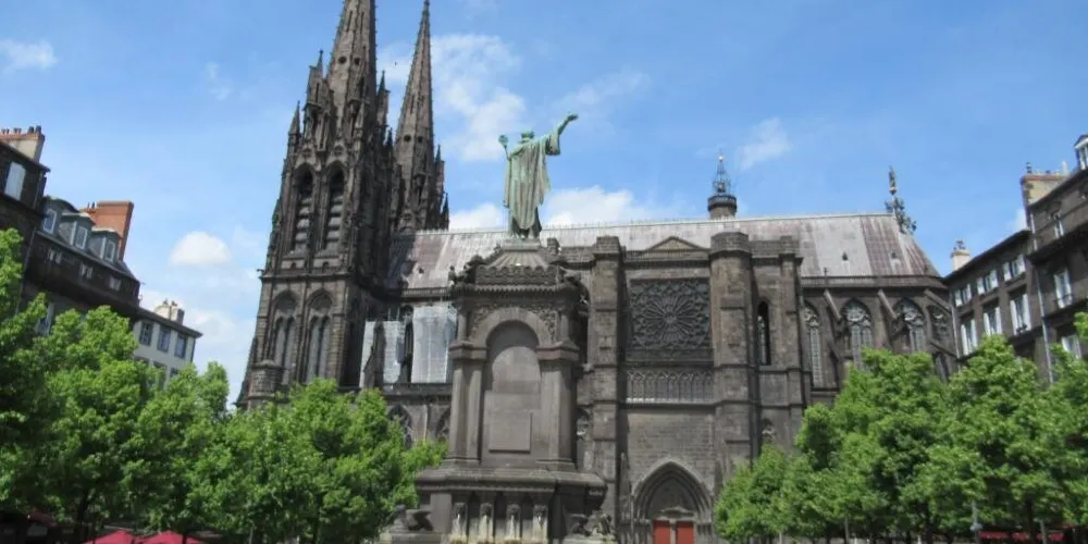 聖母昇天大教堂是克萊蒙費朗的標誌性古代建築,這座宏偉的建堂始建於13世紀中葉,據説是一座採用火山熔巖石建起來的建築,它那精雕細琢外部裝飾和暗色調的外立面令人印象十分深刻。