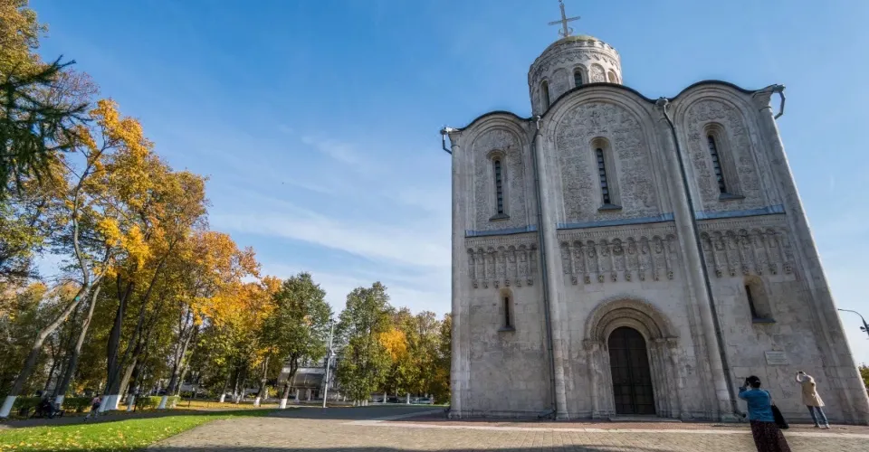 聖母升天大教堂坐落在市區克利亞濟馬河岩陡峭高地上,是俄羅斯現存最古老的教堂。以12世紀當地流行的“無色人工寶石建築結構”而聞名,是12世紀俄羅斯建築中最偉大的創造之一。在12到15世紀期間,沙皇都在此加冕。在共產主義禁教時期,唯有此教堂仍為民眾敞開大門,受到東正教的推崇。到了19世紀,由於原教堂不再使用,在原教堂右側蓋了白色大石教堂。教堂內還有文化中心、圖書館等。