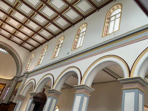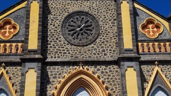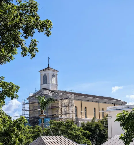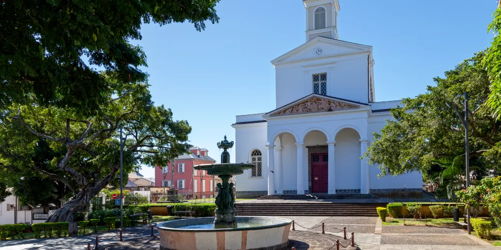 這座託斯卡納風格的天主教堂建造於19世紀,教堂不大,外觀樸實無華,雖然在現代重建過,衹留下了近代的門楣浮雕,但是白色的外牆在藍天下顯得非常聖潔莊嚴。教堂前面有一座金屬鑄造的噴泉,面向四面的少女分別手持甘蔗、齒輪、蛇杖和船槳,似是象徵留尼汪的歷史與精神,也使周圍的環境變得更加靈動。