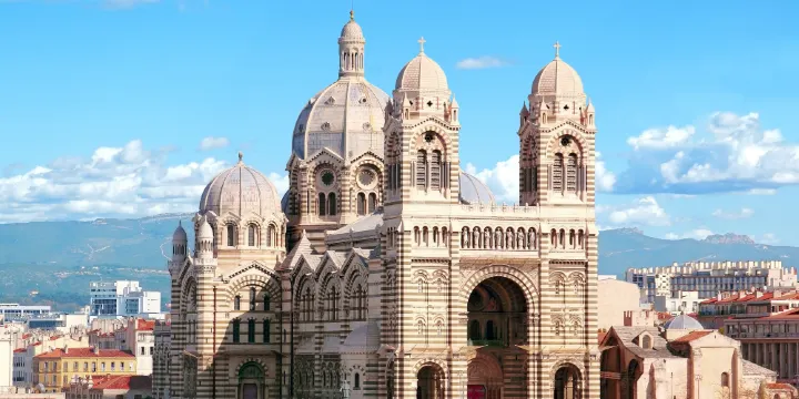 馬賽主教座堂是一座拜占庭-羅馬式風格的羅馬天主教的主教座堂,矗立在馬賽的舊港北部Joliette區的海岸上,建築外觀氣勢宏偉,內部裝飾細膩華麗。