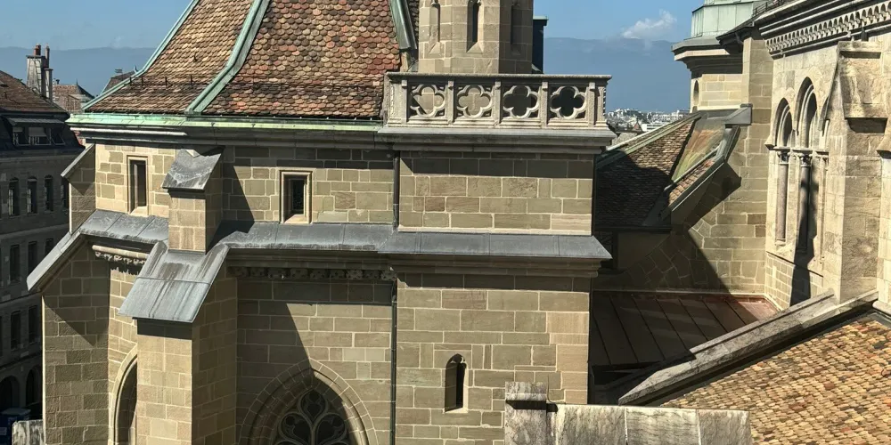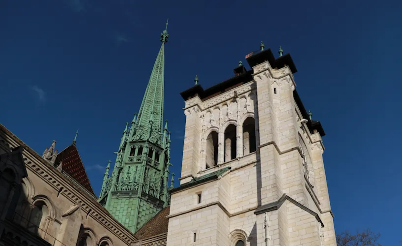 聖皮埃爾大教堂有兩座塔樓,沿著旋轉樓梯登上塔頂即可享受360°的日內瓦美景,日內瓦老城、日內瓦湖的景緻都盡收眼底。兩座塔樓之間是互通的,之間由走廊連接。