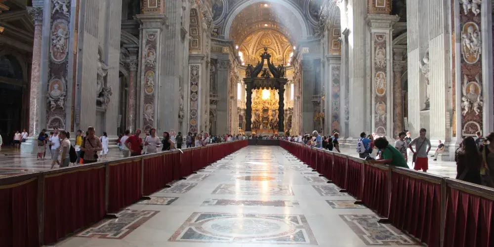 這座大教堂歷經了數次重修,融匯了多種建築風格:壯觀的正立面建有希臘科斯林式的白色圓柱,頗有希臘神殿的風範,教堂羅馬式的主體建築搭配有哥德式的尖塔和拱門,十分獨特。