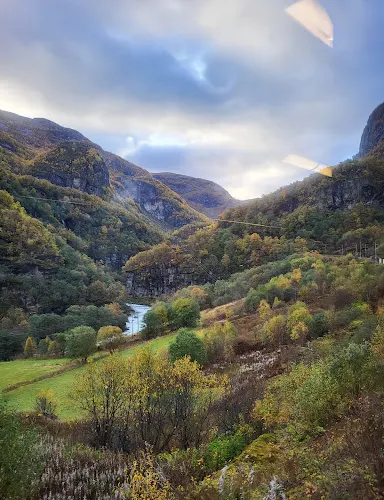佛萊姆小鎮坐落在艾於蘭峽灣的中心地區,隱藏在三面大山的懷抱中,這裡被人們稱為“離上帝近的地方”。小鎮空氣清新,陽光明媚,擁有美麗的峽灣景觀、俊秀的群山,還有成片的果園和古樸的鄉村建築。是著名的佛萊姆高山鐵路的起點和終點,同時也是重要的遊輪港口。