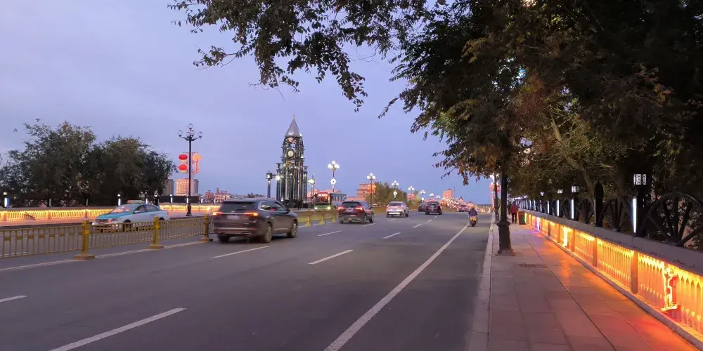 中央橋位於海拉爾繁華的勝利大街上,它雖然並不是出名的景點,但兩邊橋頭各設有兩座鐘樓式建築,以及橋上的兩排歐式橋燈,讓這座橋看上去充滿異域風情,尤其在夜晚燈光襯托下尤為迷人。