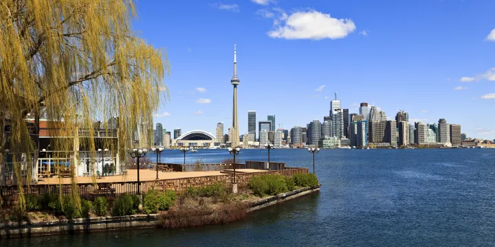 多倫多市湖邊央街對開湖面有多個島嶼,統稱為多倫多群島。當中以形似英文字母 L的多倫多島(Toronto Island)面積最大,該島左邊“手臂”部分的最上角名為漢蘭角(Hanlan'sPoint),向右橫伸的最尖端部分名為沃德島(Ward's Island),而位於中間的其餘部分才是大家熟悉的中央島。