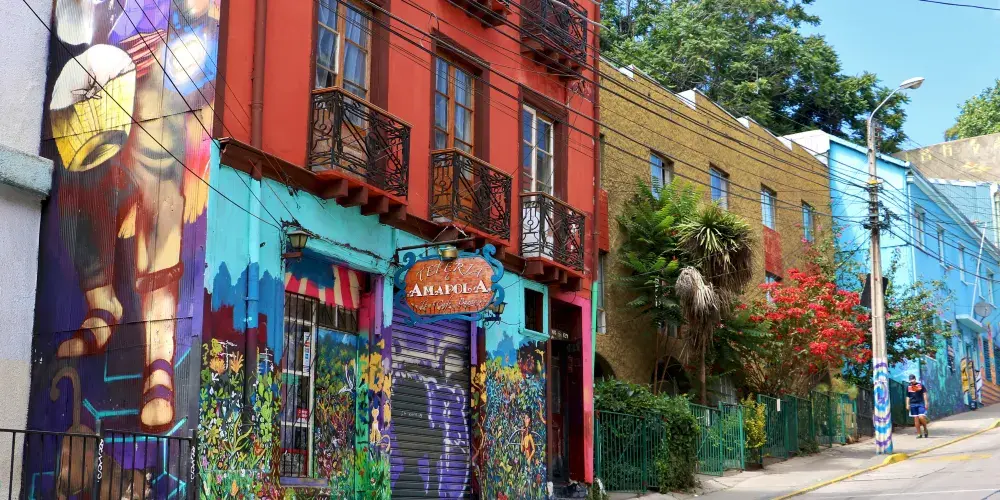 Cerro Alegre是智利瓦爾帕萊索的一座色彩繽紛的山丘,以其獨特的藝術氛圍和迷人的街景吸引著遊客。漫步於此,您會發現牆壁上充滿創意的壁畫和塗鴉,展現著當地藝術家的才華。這裡的街道蜿蜒曲折,鋪滿鵝卵石,散發著濃厚的歷史氣息。區域內有許多藝廊和手工藝品商店,販售獨特的本地藝術品和紀念品。咖啡館和餐廳遍佈街頭,提供從傳統智利美食到國際風味的多元選擇,是休憩和體驗當地生活的理想場所。從山丘的高處,您可以俯瞰瓦爾帕萊索港口的壯麗景色,尤其在日落時分,景色尤為迷人。建議穿著舒適的鞋子,以應對這裡起伏的地形。