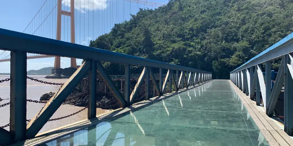西堠門大橋是舟山大橋連島工程五座跨海大橋中技術要求很高的特大型跨海橋樑,跨越西堠門水道,連接冊子和金塘島,主橋為兩跨連續鋼箱梁懸索橋,主跨長1650米,引橋長900米,是目前世界上較大跨度的鋼箱梁懸索橋。景區比鄰國際航道西堠門水域。西堠門航道是全國有名的急流區,當地人有句話“船老大好當,西堠門難過”來形容西堠門水流之湍急,西堠門水域歷來盛產鮸魚,遊客可品嚐到正宗的“鮸魚十吃”。景區目前有6個觀景平台,分別從不同角度欣賞西堠門大橋的雄姿風采。