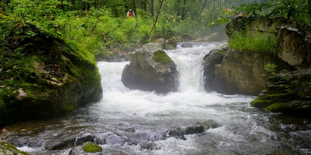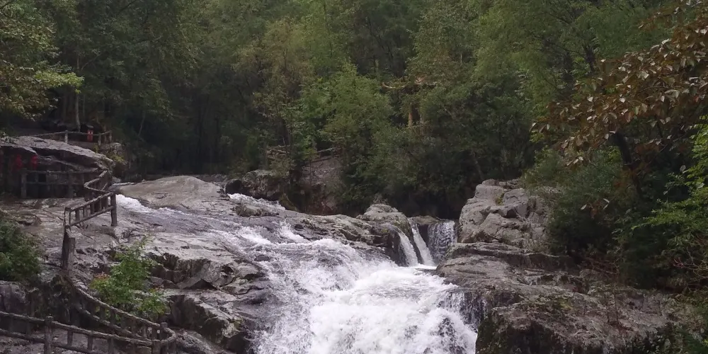 柴河小九寨(北國小九寨)風景區,位於長白山餘脈張廣財嶺東麓的宏聲林場,是全國極大的森林公園—威虎山國家森林公園的核心景區。這裡的原始森林紅鬆成片,蒼天古樹高大挺拔,走在林中可享受古樸清幽、花氣芳香,其秀麗的風光與原生態的自然環境,都可讓遊客感受到九寨溝般的韻味。景區內還有兩條清澈的高山河流—金溪谷和銀溪谷,終年流水不息,由於落差較大、多處跌水,而形成東北地區罕見而壯觀的九疊泉瀑布群。