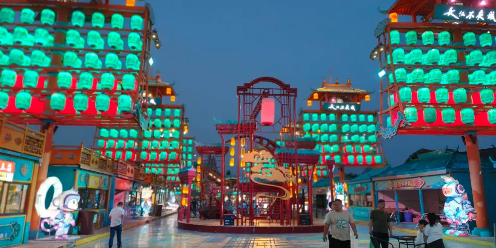 長江不夜城屹立於安徽省馬鞍山市長江之畔,景區佔地面積134畝,總面積89332m,街區總長1100米,集精緻國潮場景、燈光藝術交互、行為藝術演繹、科技體驗、特色美食、網紅打卡、水景水秀裸眼3D全息、沉浸式巡遊演出於一體的綜合型休閑旅遊度假勝地。