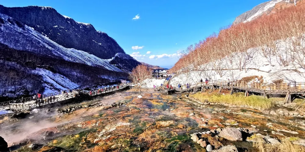 則評價聚龍泉位於長白山自然保護區北坡景區內,是長白山溫泉群中水量較大、分佈較廣、水溫較高的溫泉。在長白瀑布下方,這些溫泉口遍布山體,形成壯觀的地熱景象。遊客可行走在棧道上,從各個角度欣賞這五顏六色的溫泉帶,還可以品嚐用溫泉水煮的鮮嫩雞蛋。
