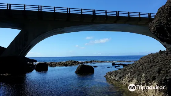 馬蹄橋位於綠島南部、龜灣和大白沙的中間,橋樑因一旁的山壁“馬蹄嶺斷崖”而得名。這座橋樑長約數十米,一旁的崖壁上每到春季就會有各色花朵盛開,十分好看。不過這座橋樑每到夏季因海浪過大,經常會禁止遊人通行。