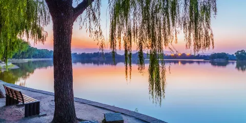 頤和園原是清朝帝王的行宮和花園,又稱清漪園,以昆明湖、萬壽山為基址,按照江南園林的設計手法建造,是規模龐大,保存完整的皇家園林,景色優美,還有很多珍貴的文物,被譽為“皇家園林博物館”。頤和園可分3個區域:以仁壽殿為中心的政治活動區;以玉瀾堂、樂壽堂為主體的帝后生活區;以長廊沿線、後山、西區為主的苑園遊覽區。