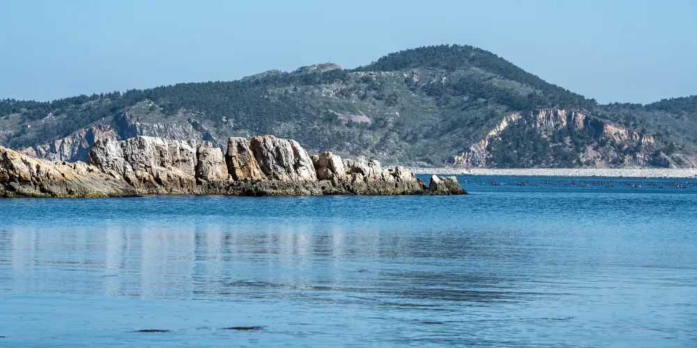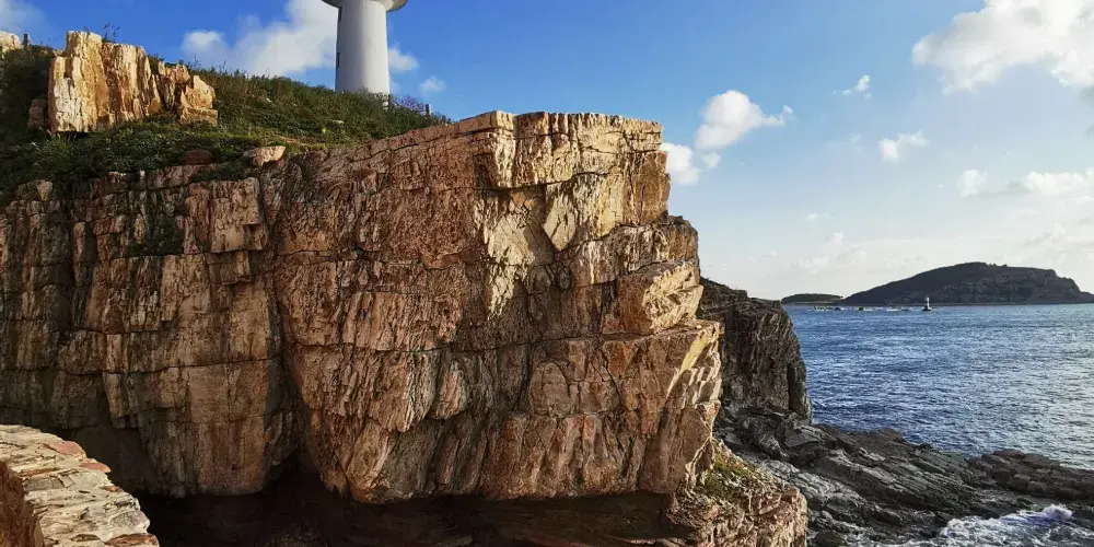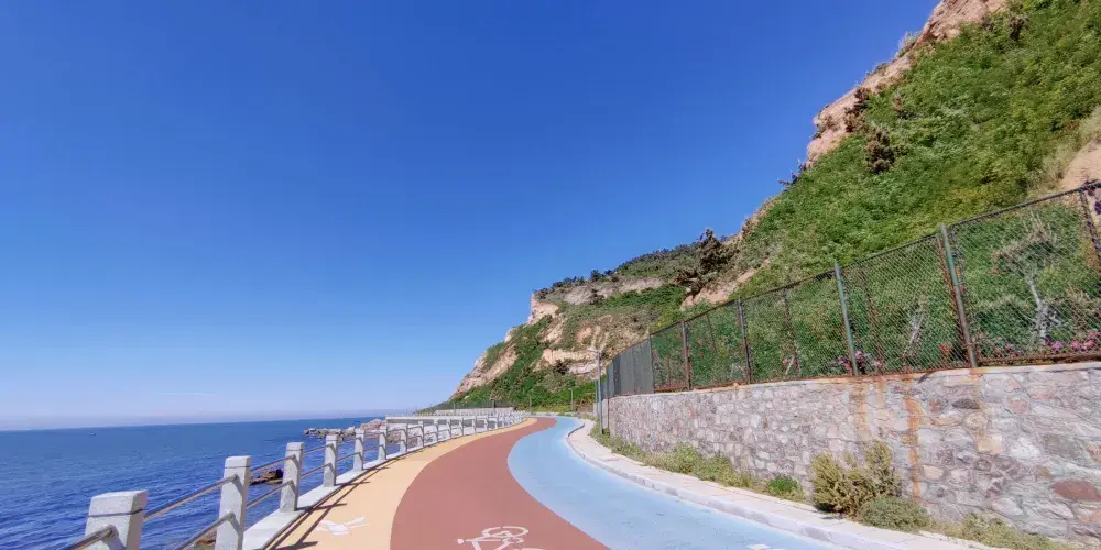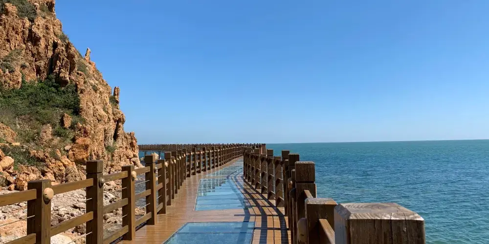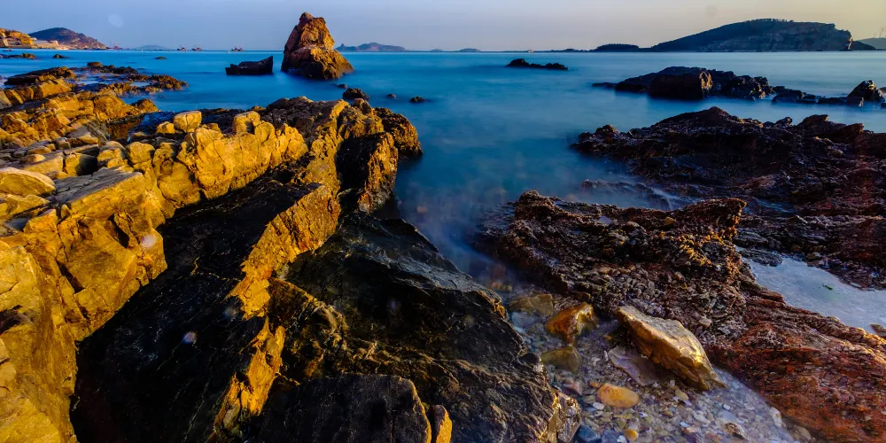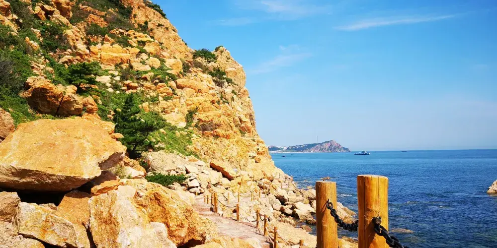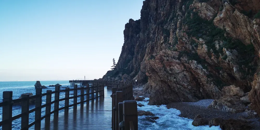 下午遊覽北島的月牙灣,就能看到沙灘上的五彩球石,這些卵石晶瑩如珠,造型色彩相間,花紋圖案精美,甚是神奇。景點內的海豹園棲息著國家保護動物斑海豹,憨態可掬,表演遵循天性,傳遞「守護海洋生態」的理念,適合親子家庭感受和諧之美。接著前往九丈崖,看高聳入雲的懸崖從海邊拔地而起,置身懸崖下時,仰望絕壁萬丈,除了感慨大自然的鬼斧神工,更多體會到的是一種震撼。這裡留存商代遺址,自然景觀豐富:鷗翅灣形似海鷗,龍舌礁如石龍探海,是地質愛好者、攝影達人及旅人的理想之選。傍晚燈塔映霞光,海面上呈現一副殘陽如血景象,遠處大小黑山島漸成輪廓,似剪影、如墨畫,美不勝收。