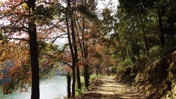 則評價甘嶺水庫位於餘杭鎮大禹谷,是離杭州非常近但鮮為人知的自然祕境。每到秋冬交替時節,繞過碧波瀲灧的水庫,穿過青翠茂盛的竹林,一直進入長樂林場紅葉區,一路醉人的景色以及鋪滿地的落葉把這裏裝點得如童話世界般。