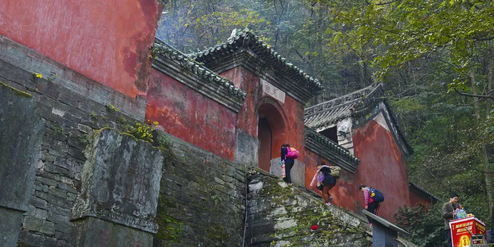 南巖宮附近的飛升崖(岩)也是值得一遊的地方,這裡三面是絕壁,一條小路可以到達峰頂,在這裡眺望遠方,山中美景盡收眼底。傳說中,真武大帝年輕時就在這裡修練幾十年後飛升成仙。飛升崖上有一塊伸出岩壁的巨石,叫“試心石”,相傳真武就是從這塊巨石上跳下而升天的。巨石下臨萬丈深淵,十分危險,如果你來這裡遊玩,千萬要注意安全,不要去涉足這塊巨石。