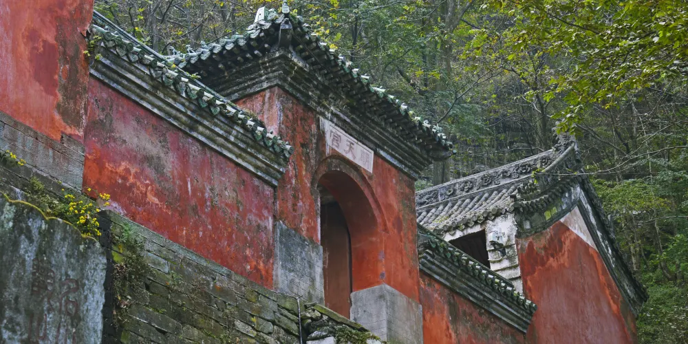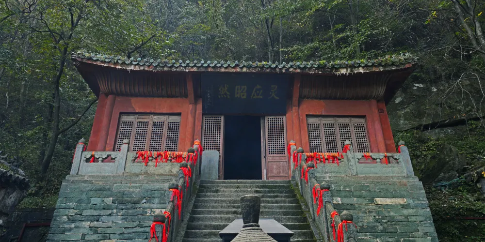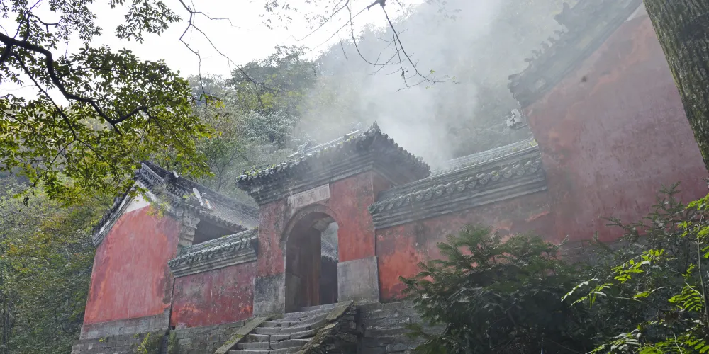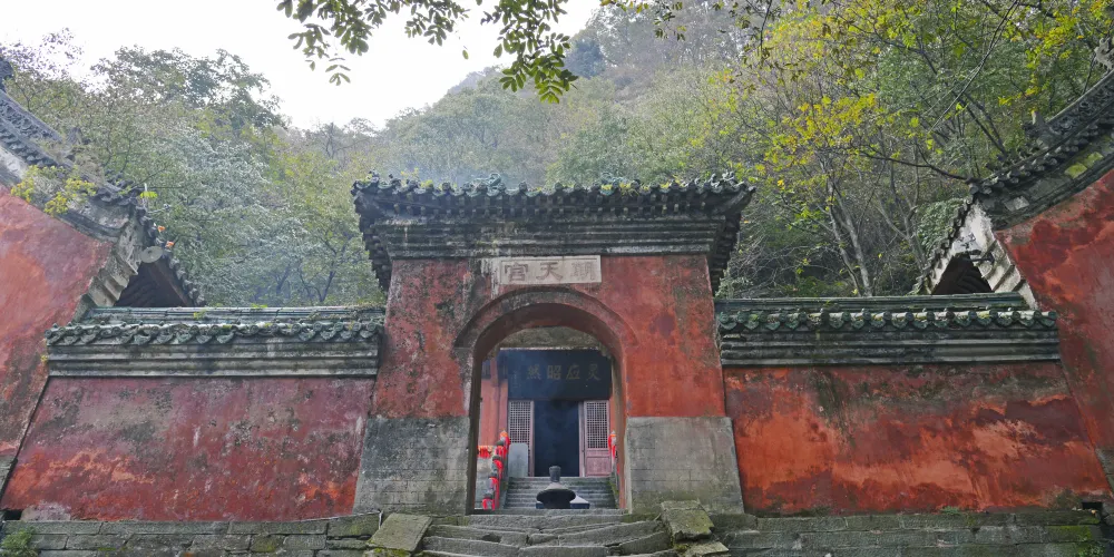 當你從陡峭曲折的古道經過南天門,來到南巖宮大殿(玄帝殿)時,會覺眼前豁然開朗,腳下是深不可測的黑虎澗,向前方望去,武當山的主峰——天柱峰在眾山環擁中,滿目青山,雲霧繚繞,會產生飄飄欲仙的感覺。