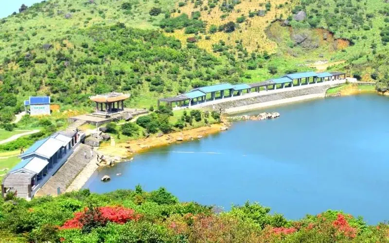 鳳凰天池位於烏岽山頂部,山頂有一個由古火山口形成的天然湖,常年雲霧繚繞,彷彿仙境一般。沿著石板路拾級而上,到達山頂如果看到了雲霧繚繞的景象,便是到達天池了,特殊的氣候使池面時而躁動時而安靜,傳說中這裡是西王母沐浴之處,更為其蒙上一層神秘的面紗,這裡的日出之景更是讓人難忘。