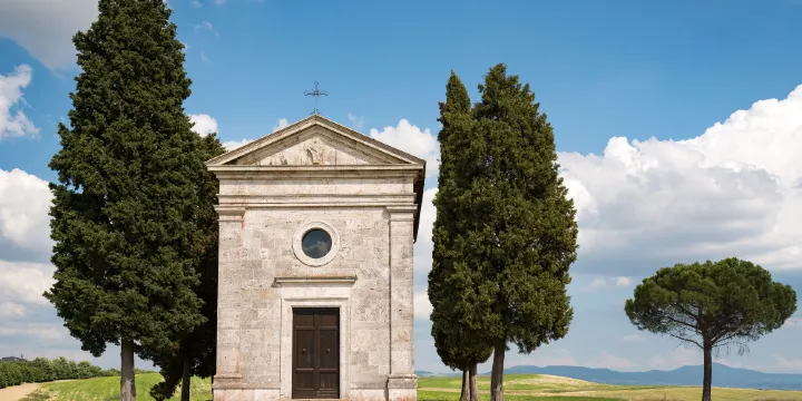 遊客可以選擇步行或開車前往,沿途欣賞托斯卡納的自然風光,體驗這片土地的寧靜與美麗。建議在清晨或傍晚時分造訪,這時的光線柔和,能夠捕捉到教堂在晨曦或夕陽下的迷人景緻。