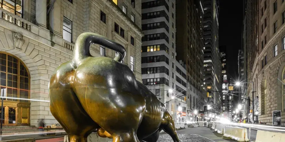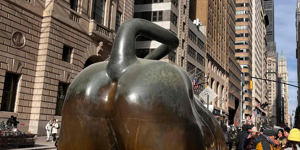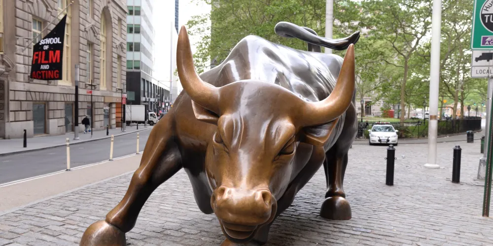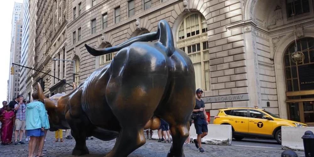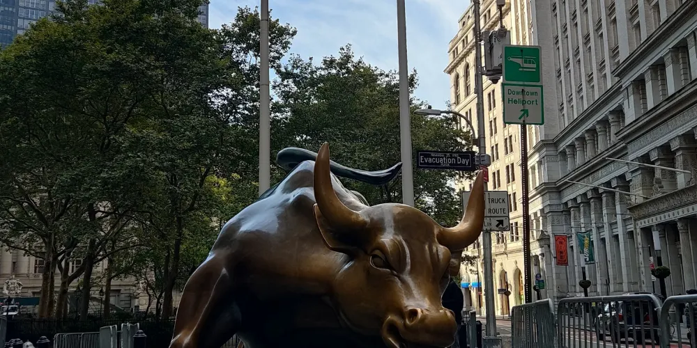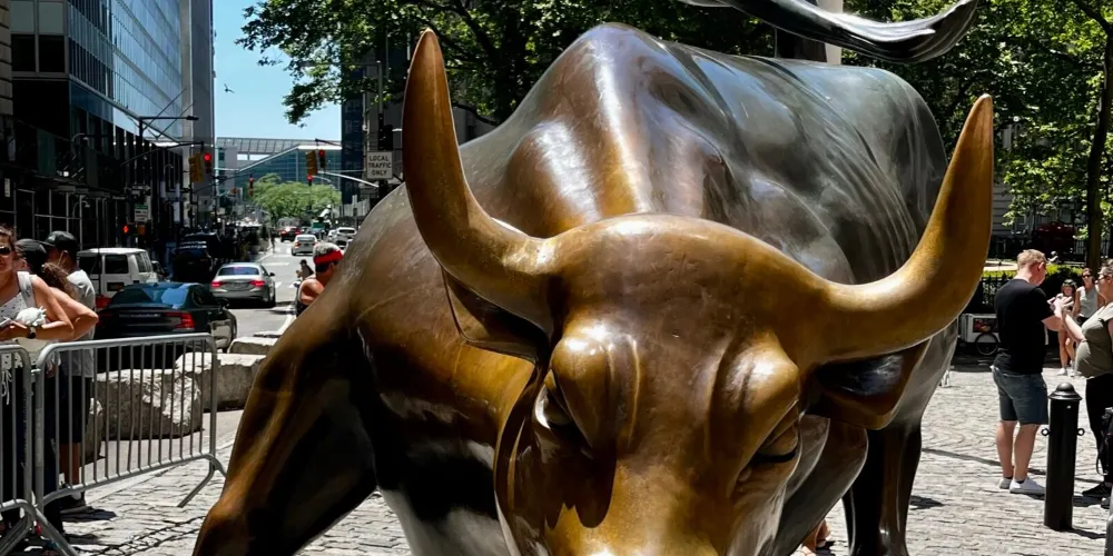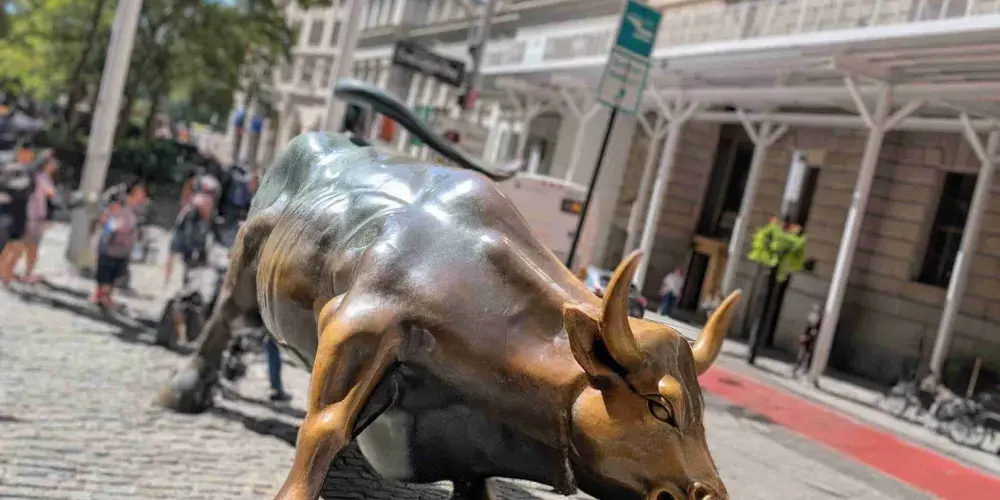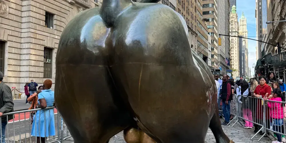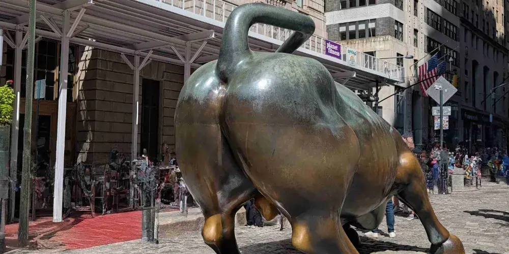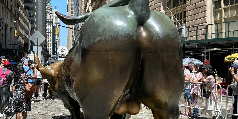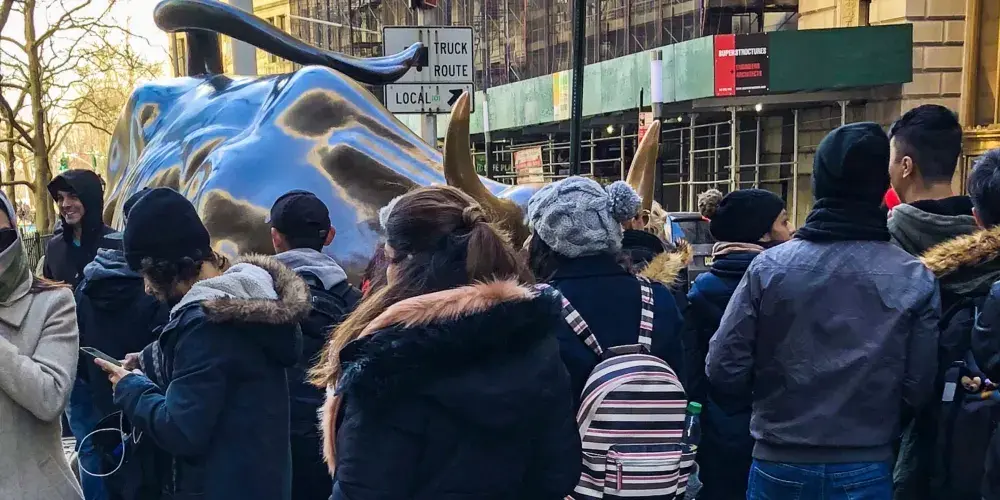 銅牛原在華爾街紐約證券交易所前方,現被轉移至附近的博靈格林公園內。它被譽為 “力量和勇氣”的象徵,寓意著股市永保“牛”市。每天都有無數遊客爭著與銅牛合影,為祈求好運銅牛也被摸得鋥鋥發亮。