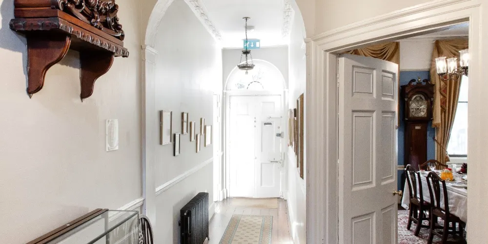 博物館所在的Doughty Street是一條非常普通的街,不留神的話容易錯過。根據路標走可以找到博物館,這棟房子和傳統的英國住宅看起來沒什麼兩樣,只是門口貼著藍底白字的圓形標牌,寫著“查爾斯•狄更斯,小說家,曾居住於此”。小小的正門經常是關閉的,按一下門鈴便有工作人員開門讓你進去參觀。