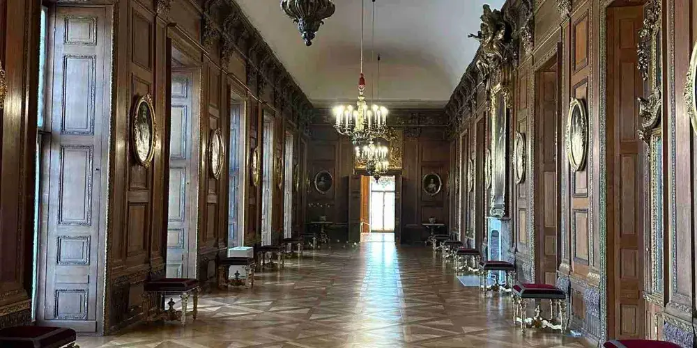 從宮殿正面可進入舊宮(Altes Schloss),舊宮的裝飾為繁複的巴洛克式風格,其中的陶器室十分值得一看,陶器室將18世紀時歐洲宮廷流行的中國風發揮到了極致,牆壁和天花板由1500多件中國陶器裝飾,十分華麗。