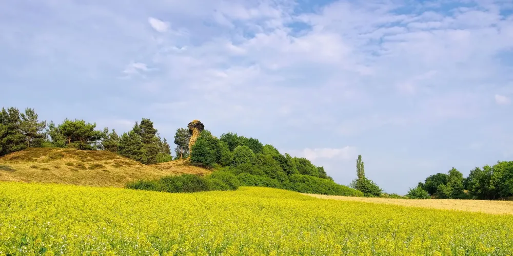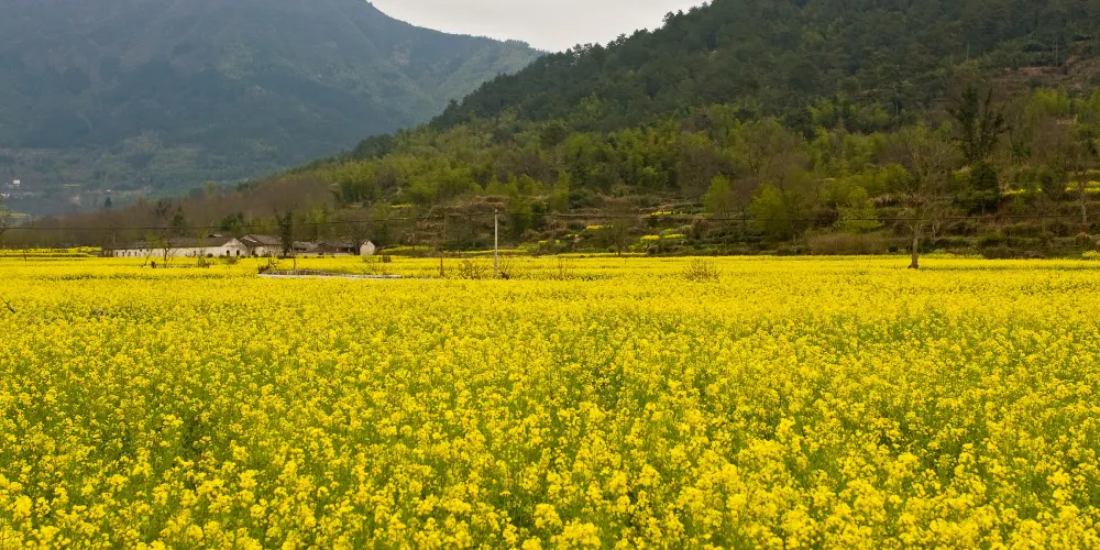 茶亭的油菜花基本集中在遠近聞名的惜字塔附近,面積達八千畝。不遠處是蒼翠的青山、碧綠的池塘、擁有神奇大樹的惜字塔,映襯在一片金黃色背景中,唯茶亭所獨有。