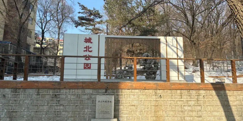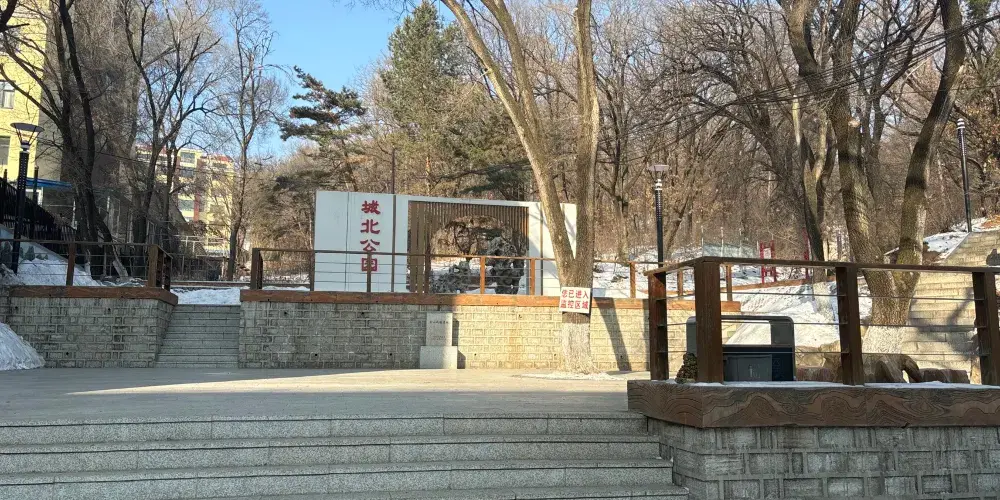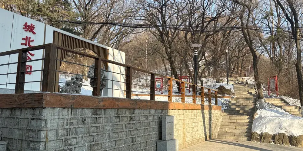 城北公園位於吉林市永吉縣,公園內森林茂盛,綠樹葱葱,爬山的路,修建了石階。山上有兩處涼亭,分別是怡然亭和曠遠亭。公園腳下,還立着一座石碑。