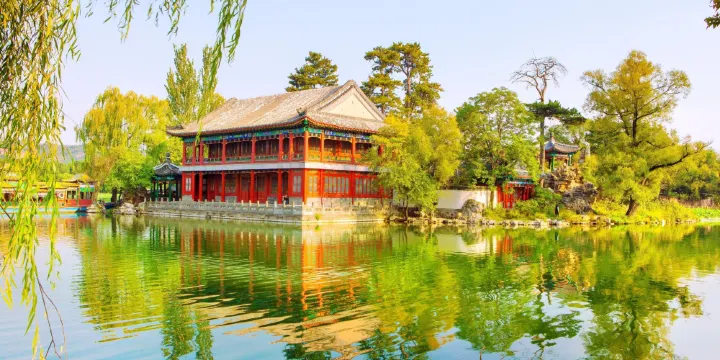河北省承德市雙橋區麗正門大街22號避暑山莊內如意洲之北的青蓮島上