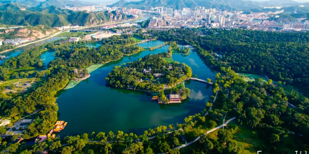 則評價在澄湖東側,仿江蘇鎮江金山景色而建。此山三面環湖,一面臨溪,極具江南水鄉秀色。“天宇鹹暢”正殿北面的上帝閣,是山莊湖區的高點,原供玉皇大帝的塑像,閣高3層。