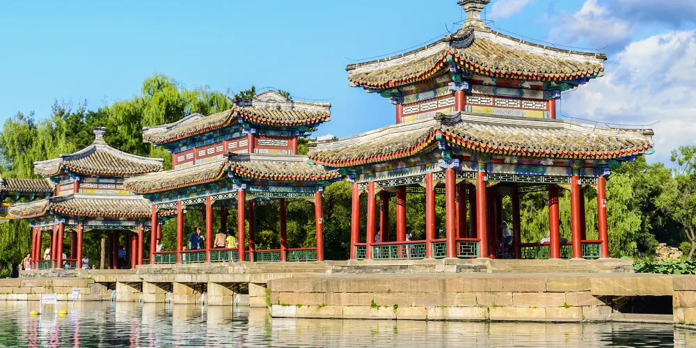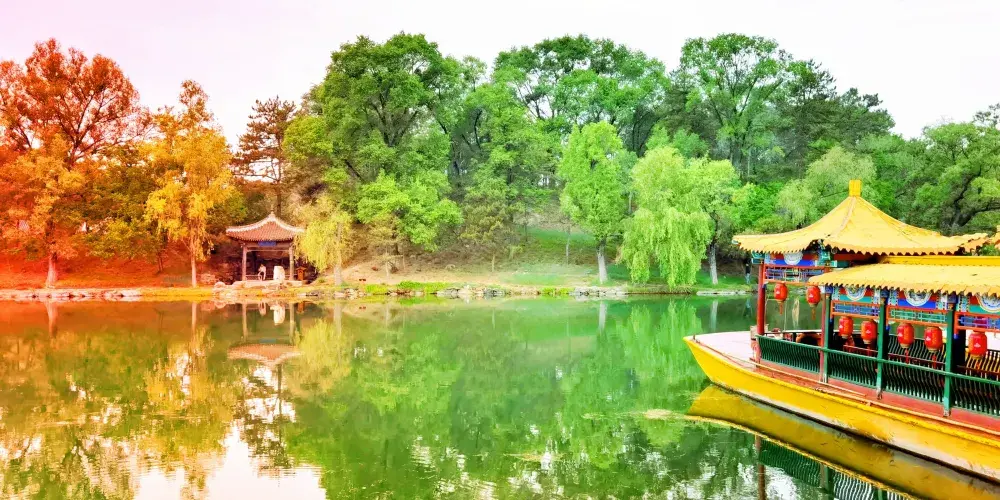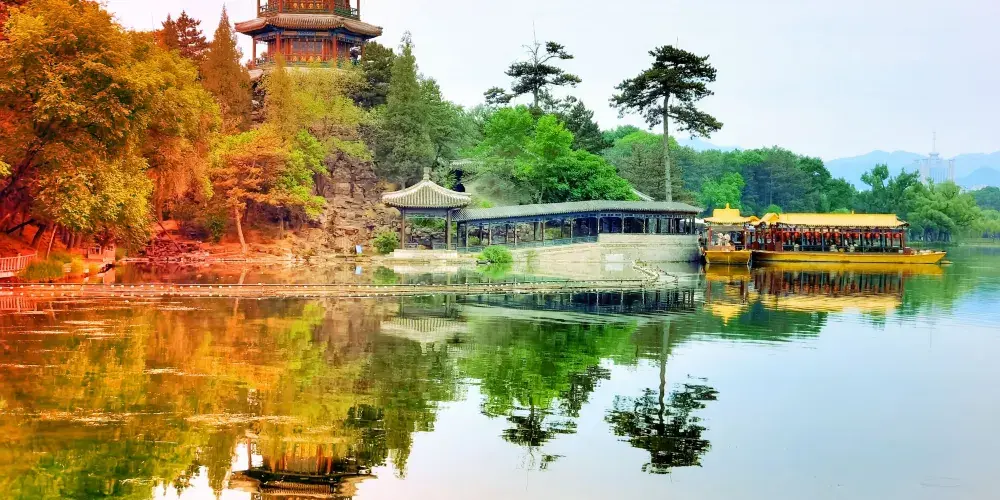 建於1703年的避暑山莊,歷經了清朝康熙、雍正、乾隆三朝,耗時89年建成。這裡是清王朝除了北京以外的第二個政治中心。避暑山莊分四大區域,南邊是宮殿區和湖區,北邊是山區和平原區,其中宮殿區和湖區是避暑山莊的精華所在。山莊內的湖區,有很多江南風格的亭台樓閣,這源於康熙、乾隆兩位皇帝對於江南景色的喜愛。