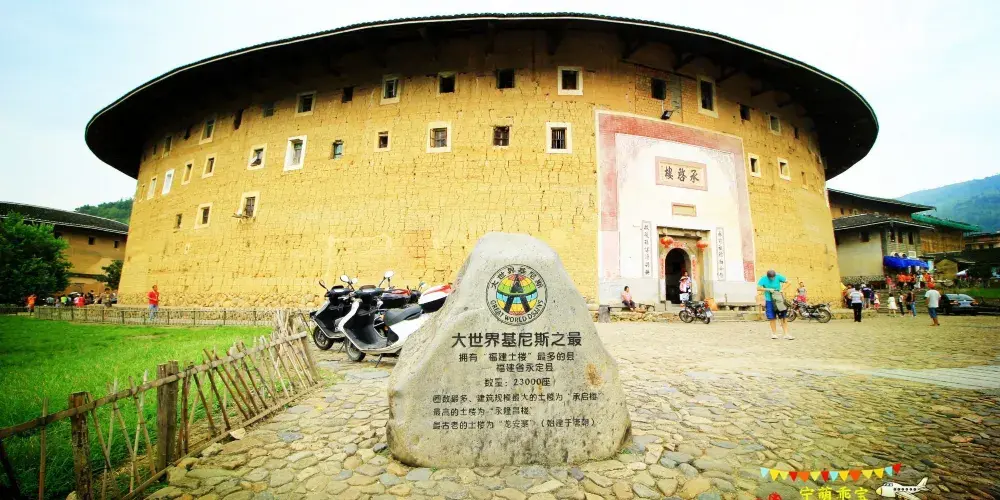 福建土樓王景區繫世界文化遺產地,位於永定區高頭鄉。景區內地標性建築——承啟樓,始建於明崇禎年間,以環數多、規模大而著稱,鼎盛時期居住800餘人。1981年被收入中國名勝辭典,獲得“土樓王”稱號,與北京天壇、敦煌莫高窟等中國名勝一齊競放異彩,是早前引起建築專家關注的客家土樓。1986年中國郵電部發行的福建民居郵票就是以承啟樓為圖案。景區中除承啟樓外,還有僑福樓、世澤樓及五雲樓等均被列入《世界遺產名錄》。地點:福建省龍巖市永定區高頭鄉高北村。