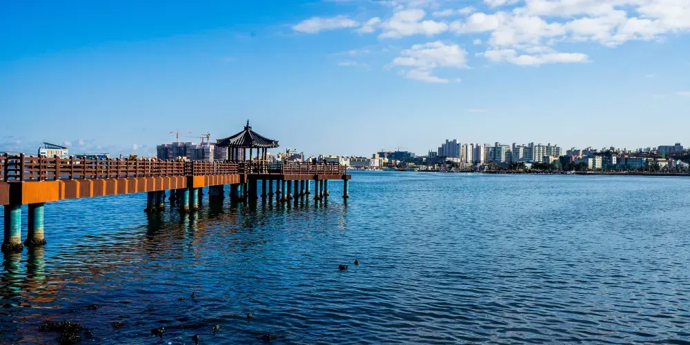 大浦港是束草最具代表性的港口,大量貨船和漁船往來於此。這裡的水產市場遠近馳名,經營剛剛從東海捕撈上來的各種海鮮。市場周圍既有生魚片小攤,也有大型的生魚片中心。