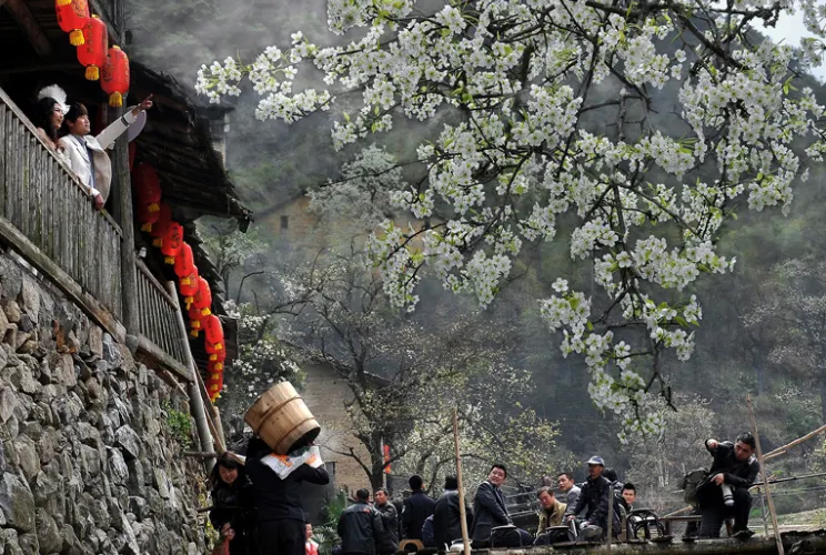 屏南鎮車盤坑村位於龍泉市西南方,該村與世界非物質遺產保護單位小梅鎮大窯村相鄰,距離大窯古窯址20分鐘車程。村內清一色的黃泥牆體的房屋錯落有致,上百棵樹齡三百餘年的梨樹環村而立,每到花開時節,雪白色的花朵映襯着黃泥黑瓦,分外美麗,堪比世外桃源。其他還有許多美麗的景點,如山澗、溪流、毛竹林、油菜花田等等,都是休閑旅遊、採風創作的良好佳地。