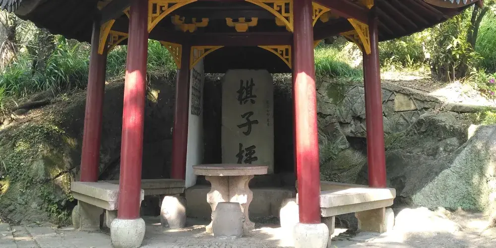 從招寶山附近的攬江平台拾級而上即可見棋子枰,相傳有仙人於此奕棋,山壁石碑鐫行書“棋子枰”三字,1795年(清乾隆六十年)立。原有亭,1846年(道光二十六年)改建魁星閣,日久湮圮。1982年整山,發掘石碑,即於舊閣原址新建奕棋亭,木結構雙檐六戧,朱椽黛瓦,高6米,直徑3.15米,亭內有石桌棋台,置鼓凳。