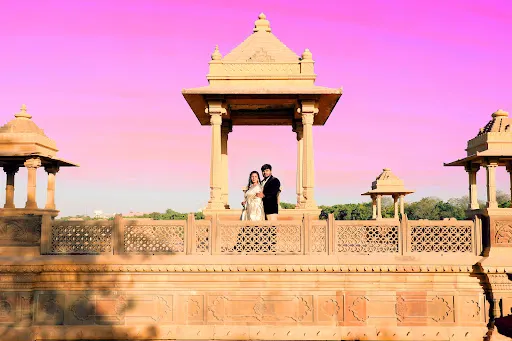 Shree Swaminarayan Temple Bhuj (Bhuj Mandir)是一座兼具精神意味與藝術美感的寺廟,這座寺廟由Swaminarayan教派創始人建造,在經歷城市震災後重建於Hamirsar湖畔,用純淨的大理石和優美的穹頂、尖塔與柱廊組成弘弘的建築群。寺廟內的牆面與天花雕刻細緻,柱子與拱頂上的動物與神話圖案交錯,共同營造莊嚴的氛圍。寺內供奉多位神像,包括Nar-Narayan、Radha-Krishna和Hari-Krishna等,殿宇佈局使朝拜路徑與儀式空間佈局清晰。這裡也是文化活動的中心:節慶慶典、音樂與歌頌,讓人能感受到當地信仰的力量。