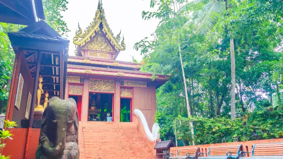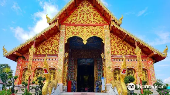 4.8 分20 則評價距離市中心 距離市中心359米Wat Mung Muang是一座帶有蘭納風格的寺廟,雕樑畫棟,十分精美。這裡以金色和紅色為主色,牆壁是白色的,看起來很是富麗堂皇。寺廟附近有座金色的大佛坐像,身上和手上都掛著佛珠,顯得慈悲而安詳。