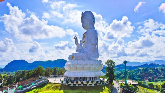 5 分152 則評價距離市中心 距離市中心5.3公里Wat Huai Pla Kung寺坐落在山上。這裡主塔共有9層,通往九層塔的台階兩旁有兩條中國龍,十分威嚴。裡面有一個金黃的佛像,旁邊還有童子站像,肅穆而安詳。而主寺外面還建著一座巨大的白色蓮花觀音坐像以及雪白的小寺,很是引人注目。